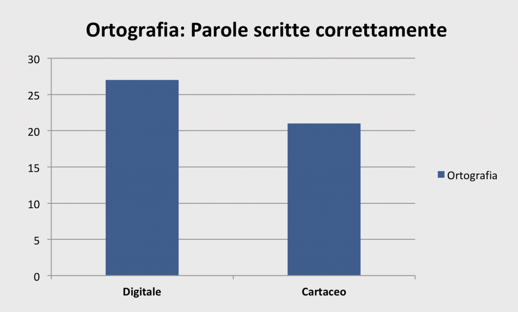 Ugualmente nelle prove di ortografia, anche per chi nelle classi prima arriva già digitalizzato, non si evidenziano differenze significative.