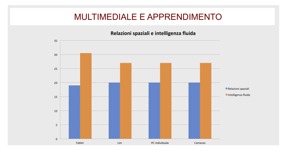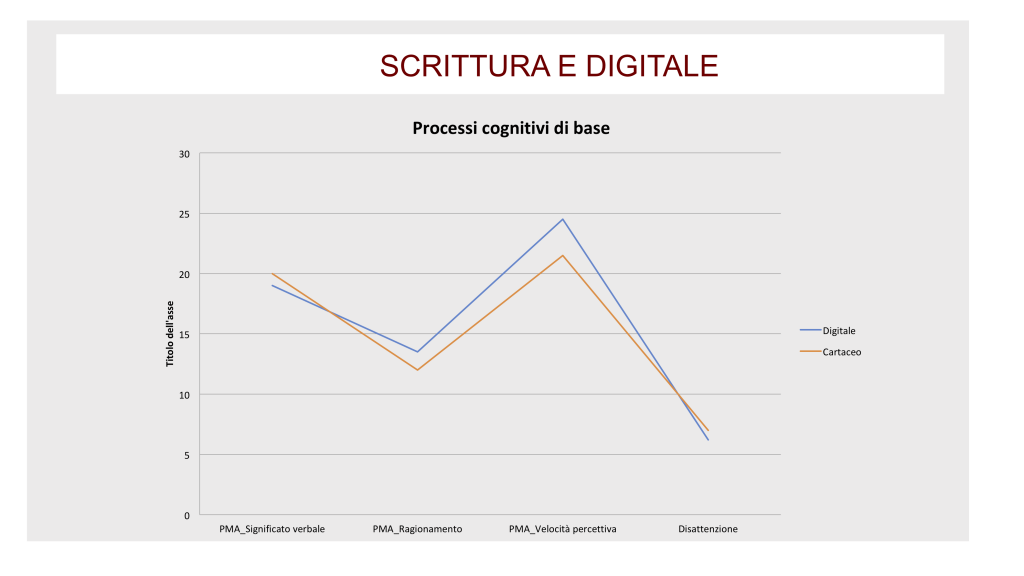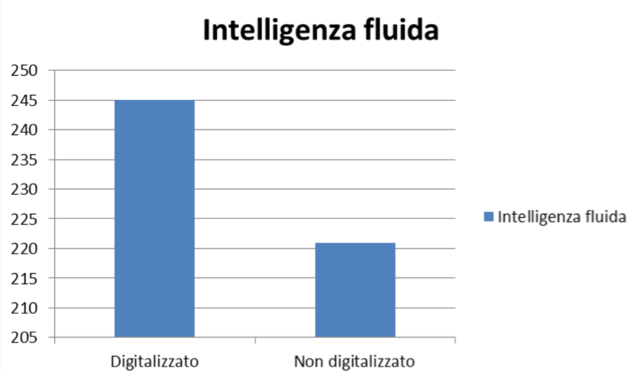 La prima osservazione è che, nei processi cognitivi di base non vi sono differenze sostanziali tra i due gruppi e dunque il digitale non provoca scompensi a livello intellettivo.