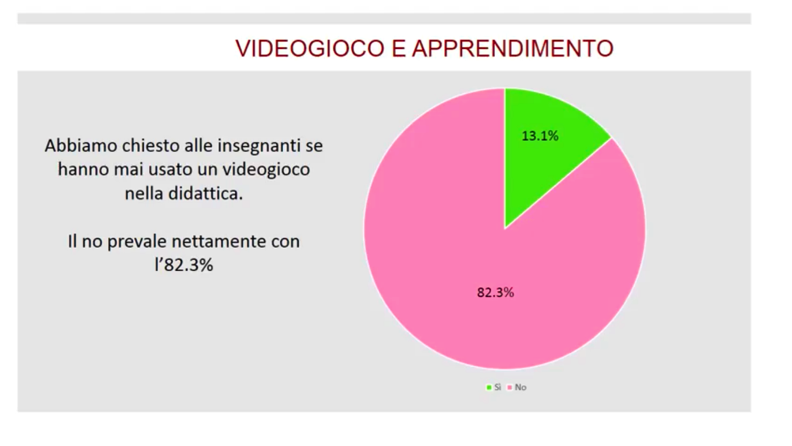 “Come insegnanti abbiamo potuto verificare che i livelli di ansia erano molto più bassi quando si usava il videogioco perché i ragazzi percepivano le attività svolte più come un gioco che come un compito”[1].